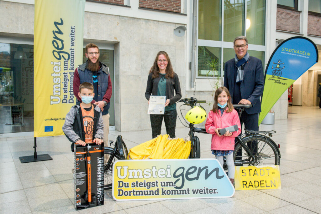 Wir haben einen großartigen 1. Platz bei der Aktion Stadtradeln in der Kategorie „Teilnehmerzahl“ (42 Teilnehmende) unter den Grundschulen aus Dortmund erreicht. Zur Ehrung war die bei der Aktion komplett vertretene Familie Meklenburg mit mir als Teamkapitän als Repräsentanten unserer Schule in der Bersewordthalle.