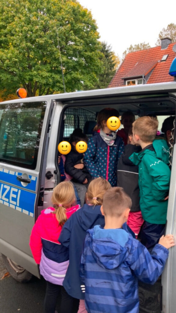 Am 9. Oktober haben die Waschbären einen kleinen Ausflug mit dem Polizisten gemacht. Sie haben gelernt, wie man sich am Zebrastreifen, an der Ampel und an Einfahrten verhält. Da die Waschbären so gut zugehört haben, durften sie danach noch das Polizeiauto besichtigen.