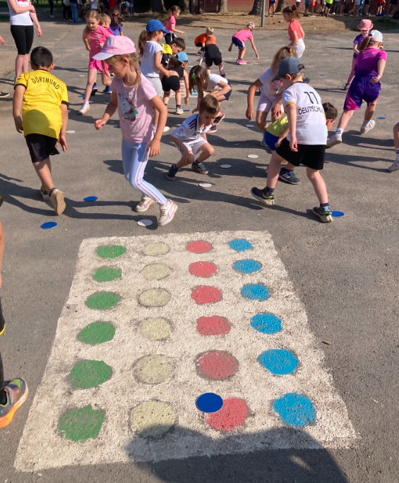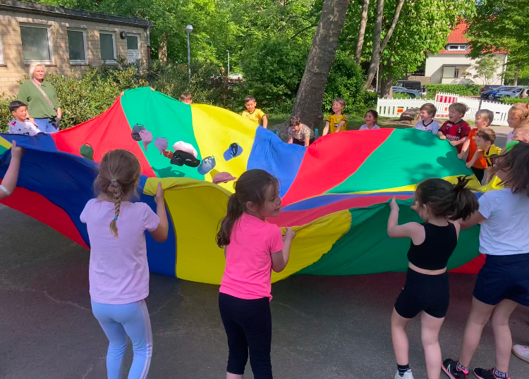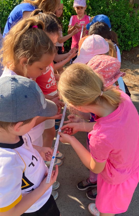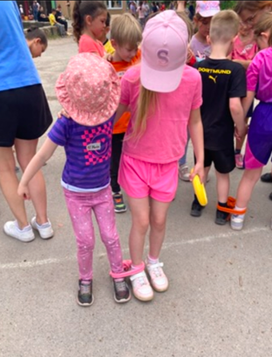 Im Mai haben die Waschbären an ihrem ersten Sport- und Spielfest teilgenommen. Sie sollten einen Zollstock auf den Fingern balancieren, mit einem Schwungtuch Übungen machen, im Drei-Bein-Lauf laufen und werfen, springen und laufen.