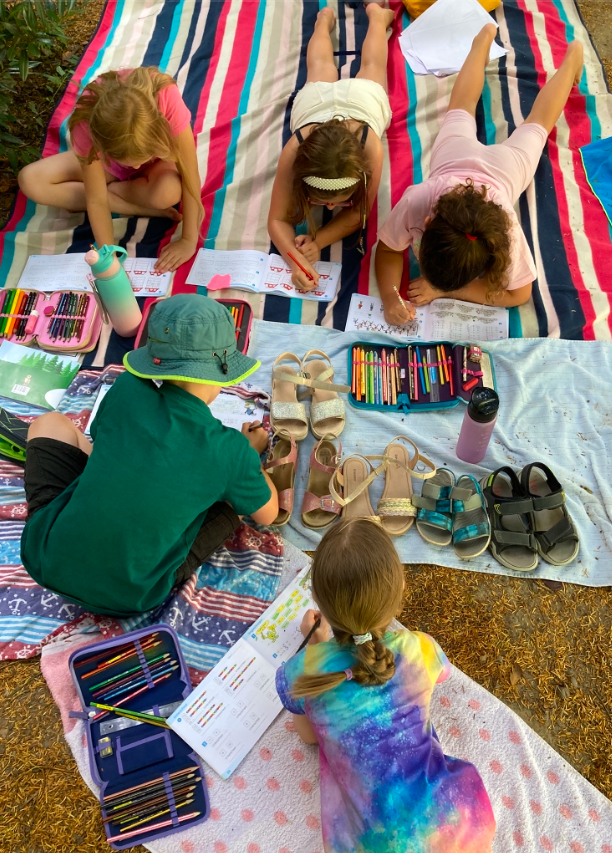 An den heißen Tagen im Sommer haben die Waschbären es im stickigen Klassenraum nicht mehr ausgehalten. Decken und Arbeitsmaterialien wurden einfach mit nach draußen genommen.