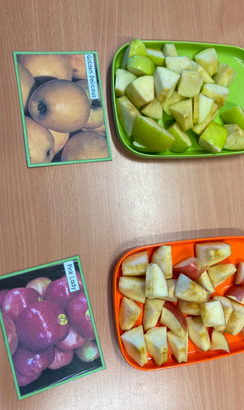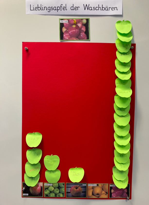 Im Oktober haben die Waschbären im Sachunterricht das Thema „Apfel“ behandelt. Die Kinder sollten auch ihren Lieblingsapfel bestimmen. Es ist die Apfelsorte „Pink Lady“ geworden.