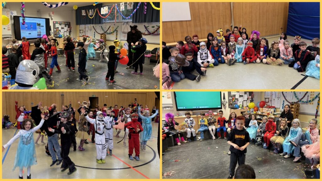 Zu Karneval haben wir eine Party in der Klasse und in der Turnhalle gemacht.